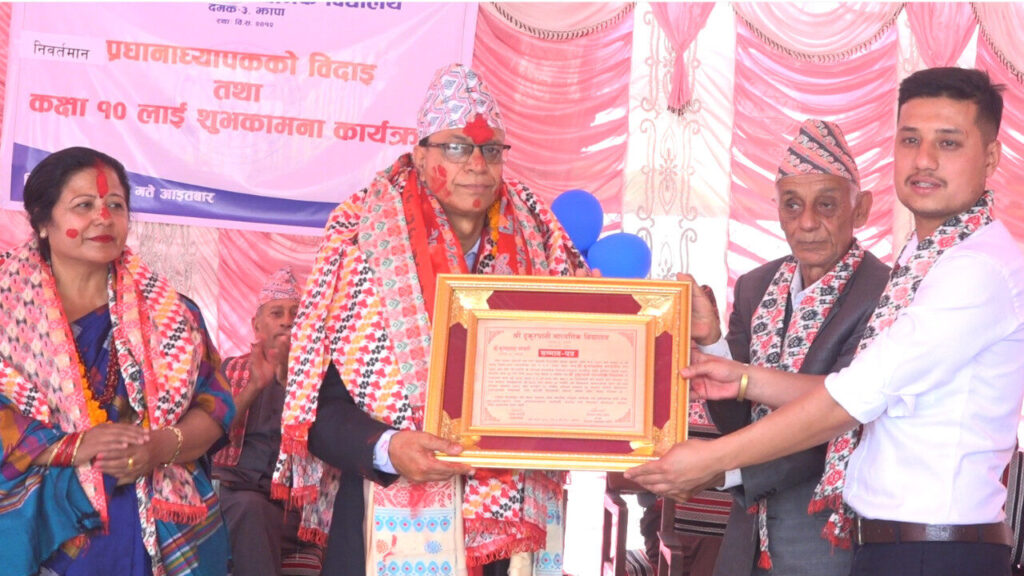 पूर्व प्रधानाध्यापक लीला खनालले नवनियुक्त प्रधानाध्यापक रघुनाथ भण्डारीले समेत नमुना काम सम्पन्न गर्न सफलता मिलोस् भन्दै सफल कार्यकालको शुभकामना व्यक्त गर्नुभयो ।