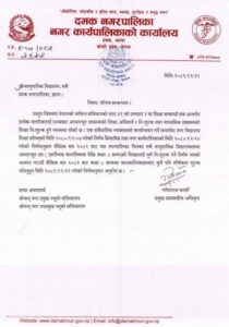 नगरपालिकाका प्रमुख प्रशासकीय अधिकृत गणेशराज कार्कीले चैत ३१ गतेको नगर कार्यपालिकाको बैठकको निर्णय अनुसार कक्षा ८ सम्मका बालबालिकालाई कुनै पनि शुल्क नलिने भन्ने निर्णय भएको जानकारीसहित परिपत्र गर्नुभएको छ ।