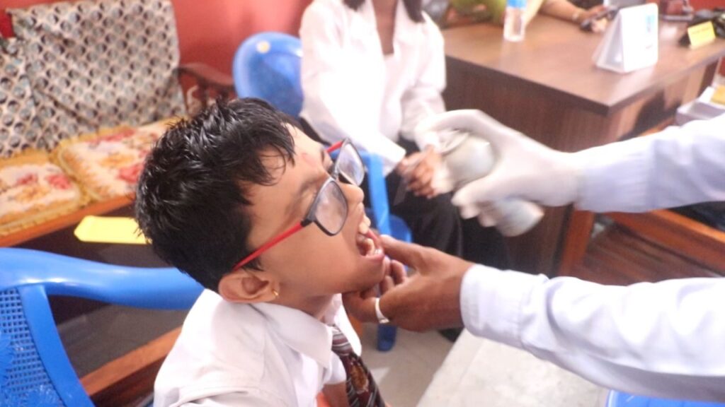 शिविरमा सेवा दिन आउनुभएकी ऊँ शान्ती डेन्टलमा कार्यरत डा. शायरा ढकालले बालबालिकालाई दाँतको स्याहार कसरी गर्ने र दाँत स्वस्थ्य राख्न विद्यार्थीहरुलाई सिकाएको बताउनुभयो ।