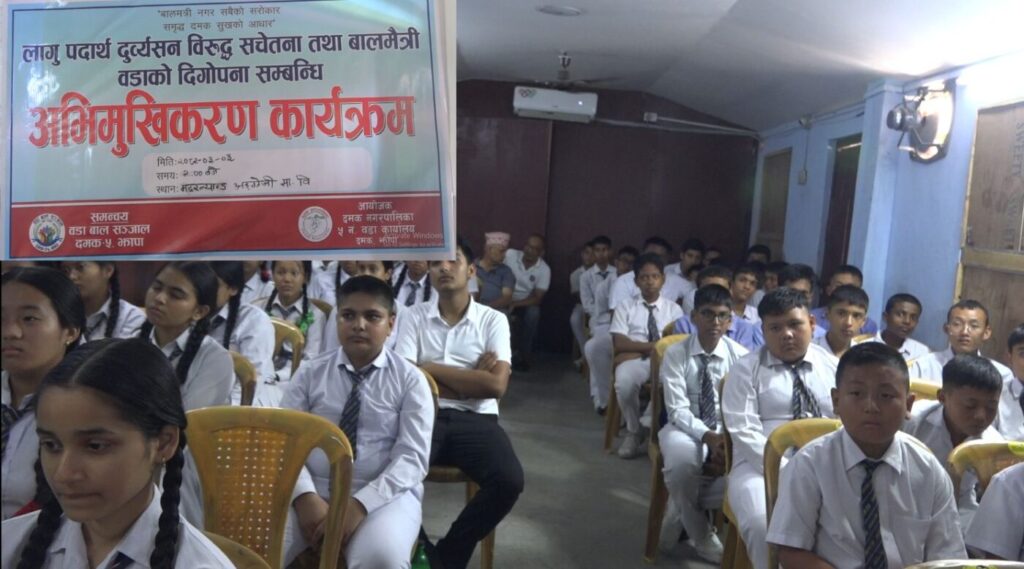 हाल झापाको दमकमा पनि लागुऔषध दुव्र्यसनी दिनदिनै बढिरहेको छ । दिनहुँ जसो नै लागुऔषध प्रयोगकर्ता तथा लागुऔषध ओसारपसारमा संलग्न रहेकाहरु पक्राउ परिरहेका छन् । दुव्र्यसनीमा फसिसके पछि बाहिर निकाल्नुभन्दा पनि दुव्र्यसनमा फस्नै नदिनको लागी भनेर वडाले यस्तो सचेतनामूलक कार्यक्रम आयोजना गरेको हो । भmापाको दमक ५मा रहेको ड्रिमल्याण्ड अंगे्रजी माध्यमिक विद्यालय र मदरल्याण्ड अंगे्रजी माध्यमिक विद्यालयमा मंगलबार दमक नगरपालिका वडा नं ५ को आयोजना र वडा बाल सञ्जालको समंन्वयमा लागु पदार्थ दुव्र्यसन विरुद्ध सचेतना तथा बालमैत्री वडाको दिगोपना सम्बन्धी अभिमुखिकरण कार्यक्रम सम्पन्न भयो । कार्यक्रममा सहभागि विद्यार्थीहरुले यस अभिमुखिकरण कार्यक्रमले लागुऔषधको असरहरुको बारेमा बुझाएको र आफ्नो छरछिमेक साथै दुब्र्यसनीमा फसेकाहरुलाई कसरी सचेत गराउन सकिन्छ भन्ने कुराको ज्ञान प्राप्त भएको प्रतिक्रिया दिएका छन् ।