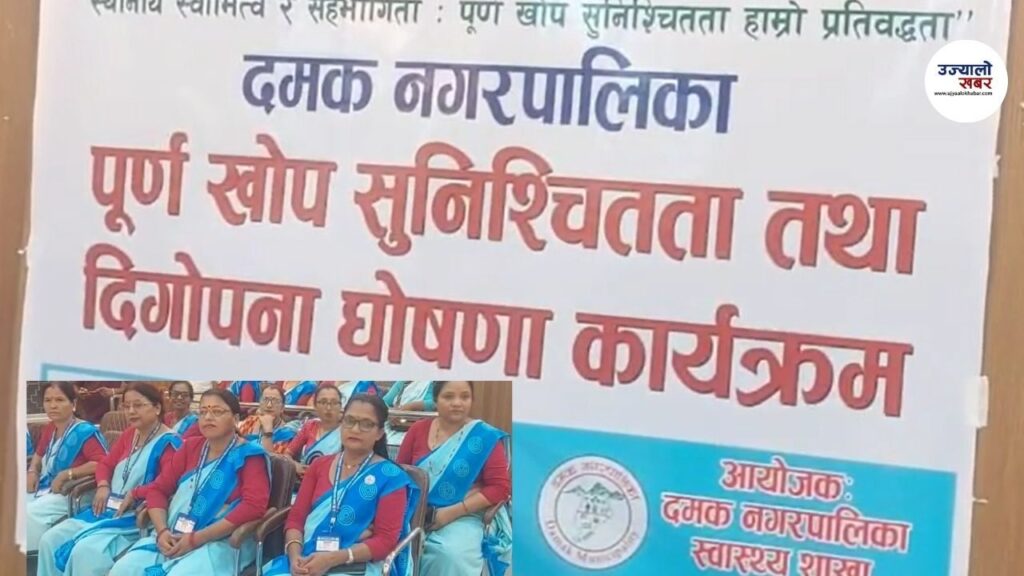 ‘स्थानीय स्वामित्व र सहकार्य ः पूर्ण खोप सुनिश्चितता हाम्रो प्रतिबद्धता’ भन्ने नाराका साथ दमक नगरपालिकाले सोमबार एक कार्यक्रमको आयोजना गर्दै पूर्ण खोप सुनिश्चितता तथा दिगोपना घोषणा गरेको हो । कार्यक्रममा बोल्दै नगर प्रमुख तथा स्वास्थ्य शाखाका प्रतिनिधिहरूले दमक नगर क्षेत्रमा खोपको पहुँच शतप्रतिशत पुगेको जानकारी गराउनुभएको थियो । उहाँहरुका अनुसार सबै उमेर समूहका नागरिकहरूलाई लक्षित गर्दै खोप अभियान सफलतापूर्वक सम्पन्न भइसकेको छ ।