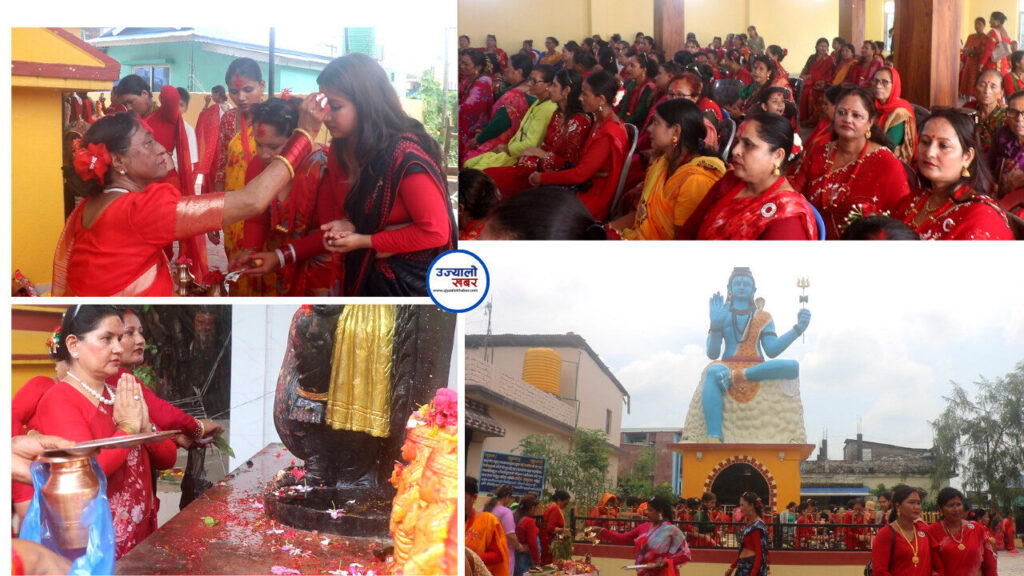 दमक ५ स्थित धनेश्वर मन्दिरमा पनि मंगलबार पूजा गर्न आउने महिलाहरुको भिड थियो । सबै जनाको अनुहारमा तीज मनाइरहँदा खुसी झल्कीरहेको थियो । कोही पूजा गरिरहेका थिए ,कोही नाचिरहेका थिए, कोही गाईरहेका थिए भने कोही फोटो अनि भिडियो खिच्नमा व्यस्त देखिन्थे ।