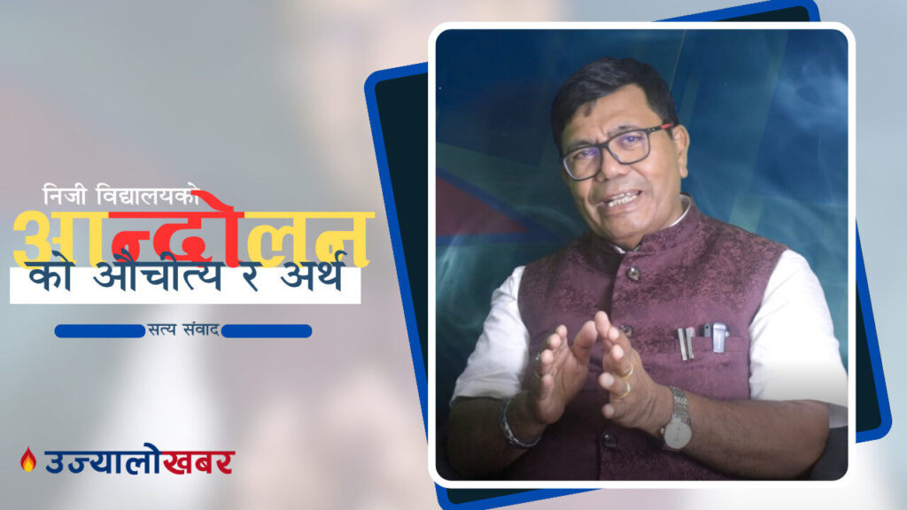आन्दोलनमा सहभागी निजी विद्यालयका सञ्चालकहरुले संसोधन नभए आफ्ना कार्यक्रमलाई शशक्त बनाउने भन्दै सरकारलाई चेतावनी पनि दिइरहेका छन् । खासमा यो आन्दोलनको तत्पर्य के हो ? भन्नेबारेमा उज्यालो खवरको कार्यक्रम सत्य संवादमा नेशनल प्यावसनका केन्द्रिय बरिष्ठ उपाध्यक्ष जय श्रेष्ठसग अनेकन सवाल जवाफ भएका छन् । जसको भिडियोको लिंक यहाँ राखीएको छ ।