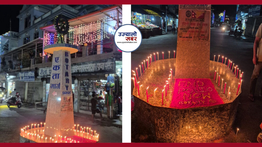 आज विश्व पोलियो दिवसको अबसरमा दमक ८ स्थित रोटरीको स्तम्भ रहेको एकता मार्गमा दिप प्रज्वलन गरिएको रोटरी क्लब अफ दमकका अध्यक्ष केशब अग्रवालले जानकारी दिनुभयो ।