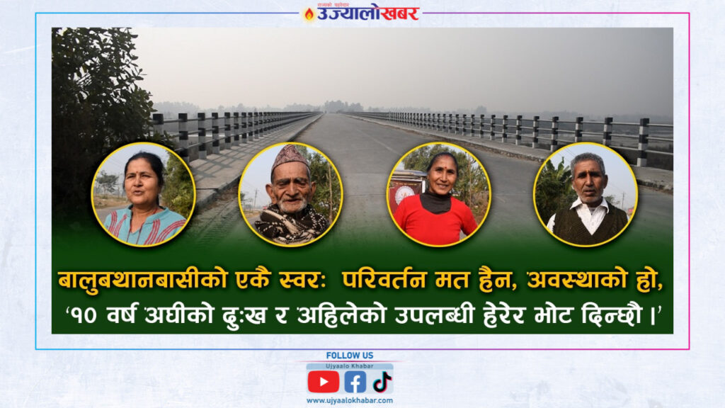 बालुबथानका बासिन्दाका लागी यात्रामा सहज होस भन्न बाटो र पुल बनेका छन् । यसले गर्दा यहाँका किसानहरुले आफ्नो उत्पादन सजीलै बजार लैजान पाएका छन् । अव यहाँ रतुवा नदिमा तटबन्धन बन्ने हो भने यस क्षेत्रको मुख्य समस्या समाधान हुने र गाउँ बस्ति सुरक्षीत रहने भएकोले आगामी निर्वाचनमा रतुवामा बाँध्न सक्ने व्यक्तिलाईनै भोट दिने बताएका छन् ।